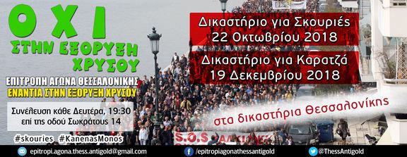 Την δευτέρα 22 Οκτώβρη, 21 άτομα από το κίνημα ενάντια στην εξόρυξη χρυσού στις Σκουριές δικάζονται από το ελληνικό κράτος.