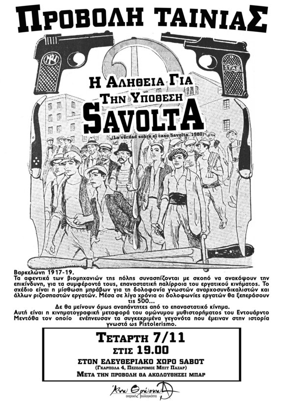 Προβολή της ταινίας "Η αλήθεια για την υπόθεση Savolta" και bar