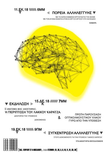 - Σάββατο 15/12, 7 μ.μ. στον Ε.Κ.Χ. Σχολείο: εκδήλωση για την Ανατομία μίας Δικογραφίας: Η Περίπτωση του Λάκκου Καρατζά, με τη συμμετοχή δικηγόρου της υπόθεσης καθώς και διωκόμενου, ενώ θα προβληθεί για πρώτη φορά οπτικο/ακουστικό υλικό γύρω από την υπόθεση