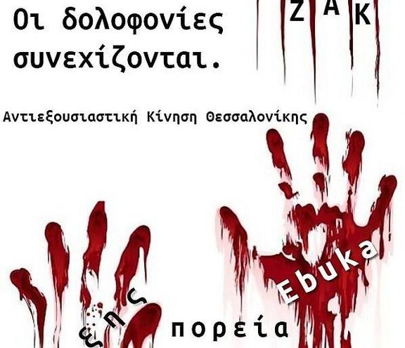 του, δίνοντας συγχρόνως τον αγώνα για την μόνη πραγματική ελευθερία, που θα έρθει με την συντριβή του κόσμου της εξουσίας. Δίνουμε την ανειρήνευτη μάχη για την προάσπιση της ανθρώπινης ζωής μέσα σε μια κοινωνία ελευθερίας, ισότητας, αλληλεγγύης. Σε πείσμα του κρατικού ρεβανσισμού, πολλαπλασιάζουμε τις κοινωνικές - ταξικές αντιστάσεις μέχρι την κοινωνική επανάσταση που θα εξαλείψει την εκμετάλλευση ανθρώπου από άνθρωπο. Οι εργάτες που χτυπιούνται από τα αφεντικά, οι κρατούμενοι όπως ο Σπύρος Χριστοδούλου, ο μετανάστης Ebuka, οι καταπιεσμένοι ανά τη γη, ξέρουμε καλά ότι είμαστε στην ίδια πλευρά της όχθης και είμαστε πρόθυμοι να ταράσσουμε τα ήρεμα νερά.