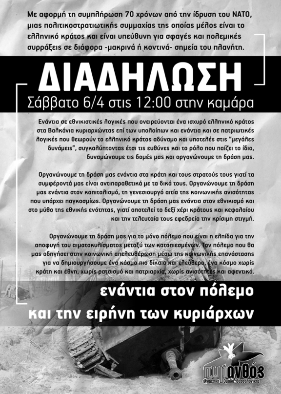 Διαδήλωση 6/4 Καμαρα, 12:00, ενάντια στο Νάτο, τον μιλιταρισμο, τον εθνικισμό και τον πόλεμο