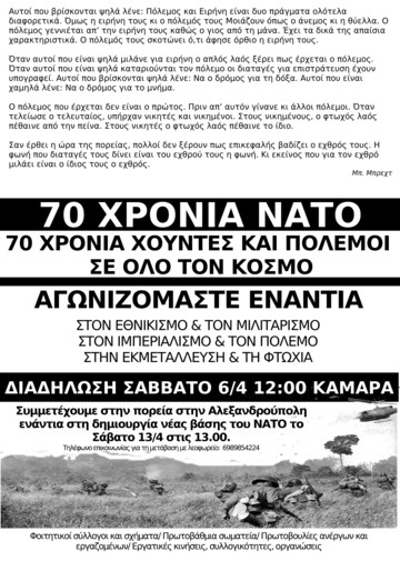 Διασυλλογική αφίσα, συγκεντρώσεις και διαδηλώσεις στη Β. Ελλάδα στα πλαίσια της καμπάνιας για τα 70 χρόνια του ΝΑΤΟ