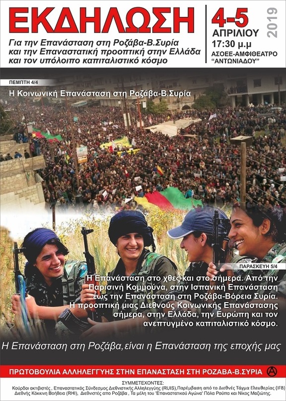 Πρωτοβουλία Αλληλεγγύης στην Επανάσταση στη Ροζάβα-Β.Συρία - Εκδήλωση στην ΑΣΟΟΕ, 4 & 5 Απρίλη 2019 στις 5:30μ.μ