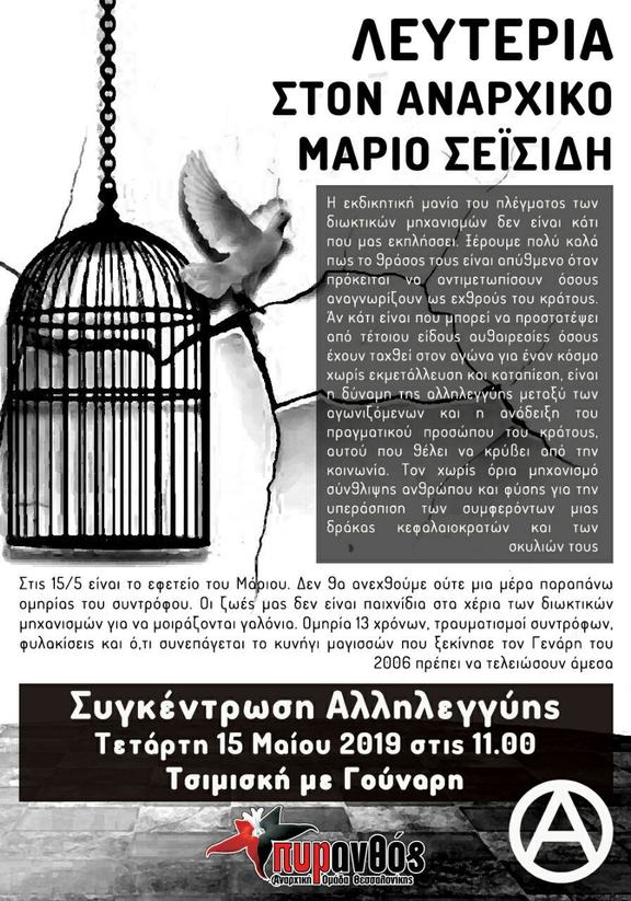 ΑΛΛΗΛΕΓΓΥΗ ΣΤΟΝ ΑΝΑΡΧΙΚΟ ΜΑΡΙΟ ΣΕΪΣΙΔΗ ΠΟΥ ΔΙΚΑΖΕΤΑΙ ΣΕ ΔΕΥΤΕΡΟ ΒΑΘΜΟ ΣΤΙΣ 15 ΜΑΪΟΥ