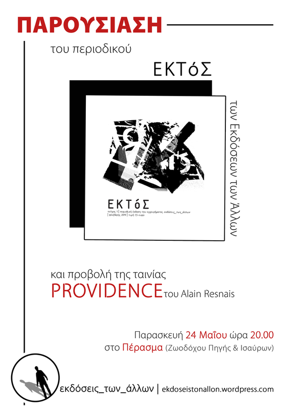Παρουσίαση του περιοδικού Εκτός και προβολή της ταινίας Providence