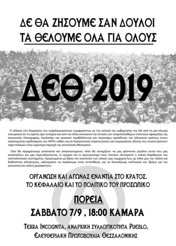 [ΔΕΘ 2019] Αφίσα και Κάλεσμα στη διαδήλωση
