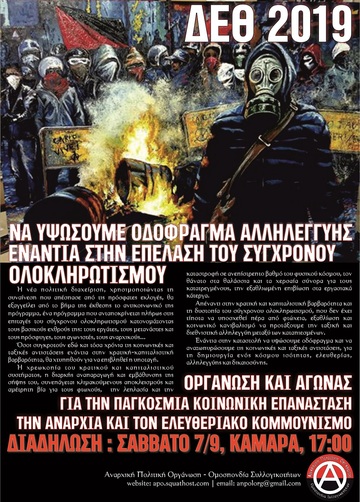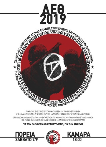 Όλοι στην πορεία της Δ.Ε.Θ. 7/9/2019. Προσυγκέντρωση Καμάρα, στο κοινό αναρχικό μπλοκ.