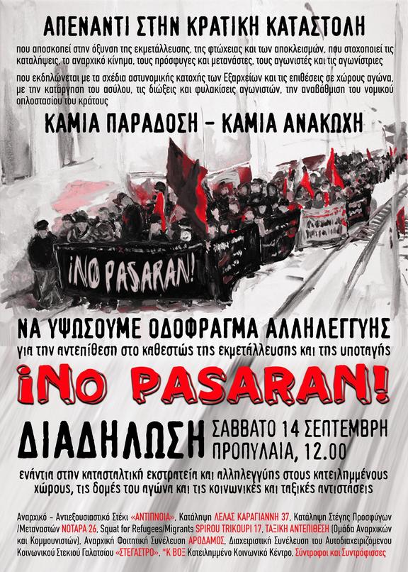 NO PASARAN! | Συγκέντρωση μικροφωνική ενόψει της διαδήλωσης αλληλεγγύης στις καταλήψεις | 10 Σεπτέμβρη, 18:00, πλ. Αμερικής