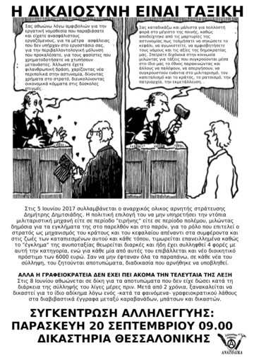 Συγκέντρωση αλληλεγγύης: Παρασκευή 20 Σεπτεμβρίου 2019 στις 9.00 πμ στα δικαστήρια Θεσσαλονίκης