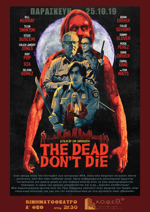 Στην ήσυχη πόλη του Σέντερβιλ των κεντρικών ΗΠΑ, όπου όλα δείχνουν να κυλούν πάντα μονότονα, κάτι δεν πάει καθόλου καλά. Τρεις σοβαροφανείς αστυνομικοί έρχονται αντιμέτωποι για πρώτη φορά με μία σοβαρή απειλή όταν τα ζώα συμπεριφέρονται περίεργα, οι ώρες της ημέρας μπερδεύονται και η Γη...ξερνάει απέθαντους! Μία κωμικοτραγική κριτική του Τζιμ Τζάρμους απέναντι στην Αμερική του Τραμπ, στην υπέρ-εκμετάλευση στης γης και τον καταναλωτισμό και ένα αχτύπητο καστ ηθοποιών. Σας περιμένουμε όλες-ους στο Κινηματοθέατρο των Ά ΘΕΘ.