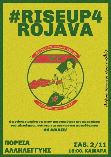 Καλούμε σε στήριξη της πορείας αλληλεγγύης στην κουρδική και διεθνιστική αντίσταση στην επαναστατημένη Ροζάβα, στα πλαίσια των διεθνών κινητοποιήσεων αλληλεγγύης: