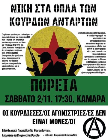Αντιπολεμική πορεία αλληλεγγύης στην κούρδικη αντίσταση: Σάββατο 2 Νοεμβρίου, 17:30, Καμάρα