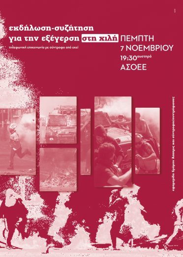 Την Πέμπτη 7 Νοεμβρίου, στην ΑΣΟΕΕ, θα πραγματοποιηθεί τηλεφωνική επικοινωνία με σύντροφο από τη χιλή σε σχέση με τα γεγονότα της εξέγερσης.