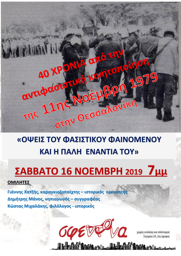 Εκδήλωση - συζήτηση: 40 χρόνια από την αντιφασιστική κινητοποίηση της 11/11/79