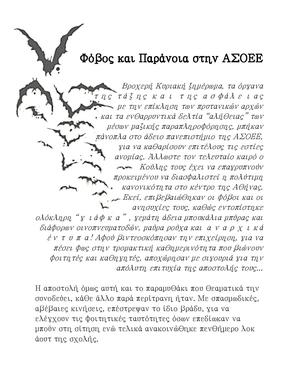Κείμενο: «Φόβος και παράνοια στην ΑΣΟΕΕ» - Πορεία Παρασκευή 15/11 @ 18.00, Πλ. Αμερικής