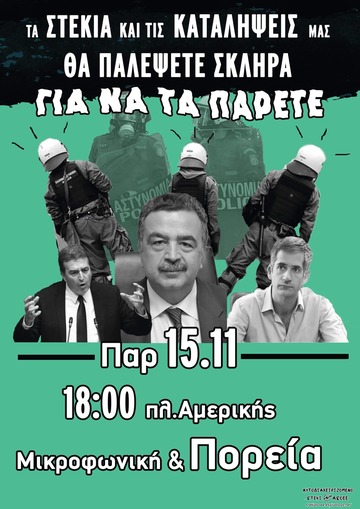 EVERYONE IN THE DEMONSTRATION ON FRIDAY 15/11 AT 18:00 AT PLATEIA AMERIKIS