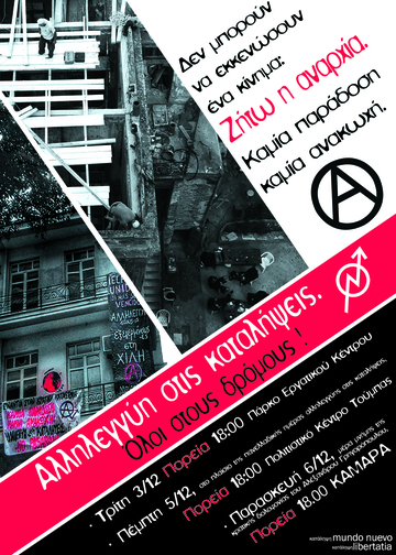 2) Πέμπτη 5/12, στο πλαίσιο της πανελλαδικής ημέρας αλληλεγγύης στις καταλήψεις, Πορεία 18:00 Πολιτιστικό Κέντρο Τούμπας (Αγ. Βαρβάρα) .