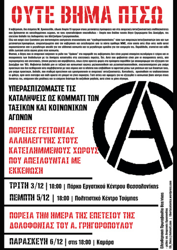 1) Τρίτη 3/12 Πορεία, 18:00 Πάρκο Εργατικού Κέντρου Θεσσαλονίκης(πάνω από την Ρωμαϊκή αγορά).