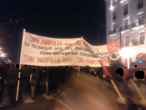 Το αίμα που χύθηκε δεν ξεπλένεται με τις αύρες της Ελληνικής Αστυνομίας, η μνήμη δεν είναι σκουπίδι, ώστε να πεταχτεί σε μια από τις χιλιάδες χωματερές ψυχών που έχει φτιάξει η εξουσία μέσα στην καταπίεση και τη βία. Όλη η γη βοά εξεγερμένη ενάντια στους δυνάστες της. Στη Χιλή και τη Βολιβία, στη Γαλλία, στη Συρία και στην Παλαιστίνη, στην Τουρκία και σε χιλιάδες σημεία που ακόμα ο πόθος για ελευθερία είναι μια καθημερινή μάχη. Για να πλεύσουμε από τους όρμους της εξεγερσιακότητας, στην ανοιχτή θάλασσα της συνολικής κοινωνικής και ταξικής αντεπίθεσης και χειραφέτησης. Για να γκρεμίσουμε τον γερασμένο κόσμο του φόβου, της υποταγής, της φτώχειας. Για να ζήσουμε τη μόνη ζωή που αξίζει να ζήσει κανείς, του αγώνα για την Κοινωνική Επανάσταση.