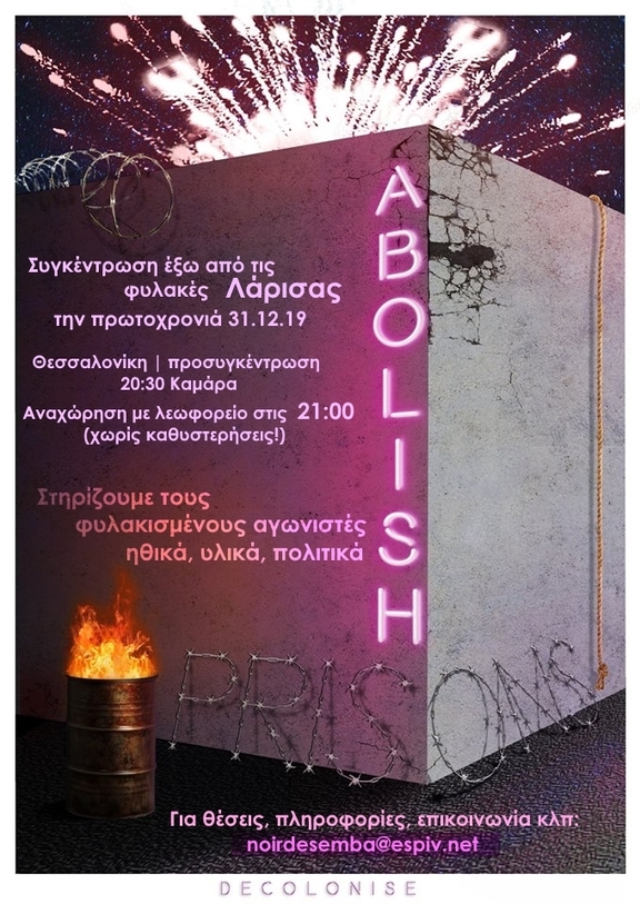 Και φέτος, παραμονή πρωτοχρονιάς, θα βρεθούμε δίπλα στους κοινωνικούς και πολιτικούς κρατούμενους στις φυλακές Λάρισας.