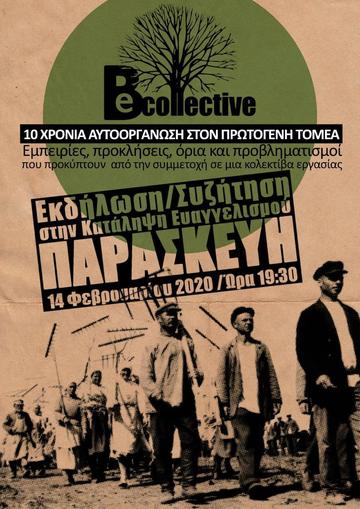 Το Becollective είναι μία κατά βάση αγροτική κολεκτίβα εργασίας που από το 2010 δραστηριοποιείται στην πρωτογενή και δευτερογενή παραγωγή τροφίμων και ποτών. Ένας σταθερός στόχος όλα αυτά τα χρόνια είναι η συλλογική κάλυψη της ανάγκης της εργασίας με τους δικούς μας όρους, χωρίς σχέσεις εργοδότη-εργάτη αλλά μονάχα με σχέσεις ελεύθερης και ισότιμης συνεργασίας. Οι βασικές αξίες που καθορίζουν τη λειτουργία της ομάδας είναι η αυτό-οργάνωση, η οριζοντιότητα, η αλληλεγγύη και η οικολογία.