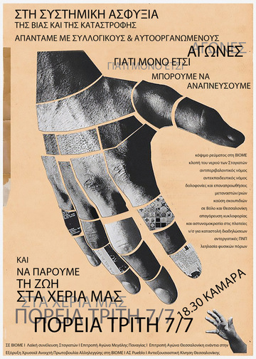 Στη νέα επίθεση που δεχόμαστε, αναγνωρίζουμε τις τραγικές μεθοδεύσεις ενός κράτους που περιμένει πανδημίες, καλοκαιρινές περιόδους και συγκαλύψεις κάθε είδους προκειμένου να περάσει αναίμακτα διευρυμένες κατασταλτικές πολιτικές. Σε αυτήν την κατάσταση δεν απαιτούμε τίποτα λιγότερο από το αυτονόητο, να μην πετάξουμε στο κάλαθο των αχρήστων το δικαίωμα της ελεύθερης διαδήλωσης, δικαίωμα που κερδήθηκε ιστορικά μέσα από αιματηρούς αγώνες. Τόσα χρόνια εξαθλίωσης μας μάθαν ένα πράγμα, όσο αφήνουμε τις αποφάσεις για τις ζωές μας στα χέρια κομμάτων και επαγγελματιών πολιτικών, τόσο ξεχνάμε την πραγματική δύναμη της κοινωνικής βάσης, τη μαζική ακομμάτιστη αδιαμεσολάβητη παρουσία μας στον δρόμο, την αναγωγή των ατομικών προβλημάτων σε συλλογικών, την μετατροπή της ατομικής εξαθλίωσης σε συλλογικό αξιοπρεπή αγώνα.