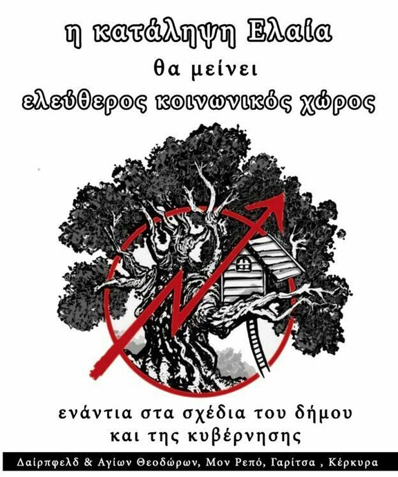 τον κόσμο του αγώνα, τον κόσμο που δεν συμβιβάζεται με την "κανονικότητα" που θέλει να επιβάλει το κράτος σε όλους μας, τον κόσμο που είναι ενάντια στην καταστολή ανοιχτών ελεύθερων χωρών όπως η Κατάληψη Ελαία, στον κόσμο που παλεύει για ένα καλύτερο μέλλον, να παρευρεθεί την Τετάρτη 08/07/2020 στις 19:30 στην κατάληψη Ελαία για να συζητήσουμε, να συνδιαμορφώσουμε και να δράσουμε ενάντια στην καταστολή που θέλει να επιβάλει ο δήμος και η κυβέρνηση.