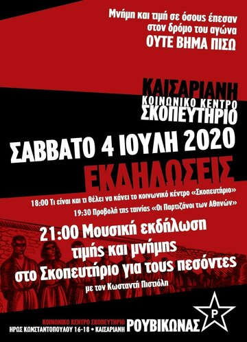 19:30 Προβολή της ταινίας "Οι Παρτιζάνοι των Αθηνών"