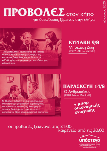 Προβολές στον κήπο για όσες/όσους ξεμείναμε στην Αθήνα: Μποέμικη Ζωή