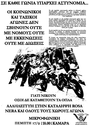 Μικροφωνική αλληλεγγύης Πέμπτη 17 Σεπτέμβρη, 18:00 Καμάρα