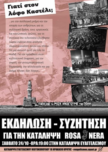 Εκδήλωση-συζήτηση για την κατάληψη Rosa Nera το Σάββατο 24 Οκτώβρη,στις 19.00, στην κατάληψη Ευαγγελισμού.