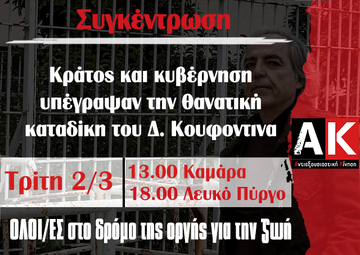 Συγκέντρωση αλληλεγγύης στον αγωνιστή απεργό πείνας Δ.Κουφοντίνα