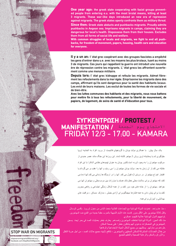 Πορεία Αλληλεγγύης στους Μετανάστες - Παρασκευή 12/03, 17:00 Καμάρα