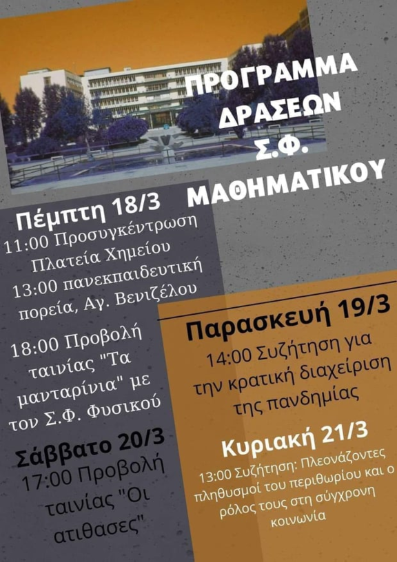 Ο σύλλογος μας συνεχίζει να κινείται σε αγωνιστική κατεύθυνση. Συμμετέχουμε στην κατάληψη της ΣΘΕ για δεύτερη συνεχόμενη βδομάδα. Ανοίγουμε τις σχολές μας με καταλήψεις.