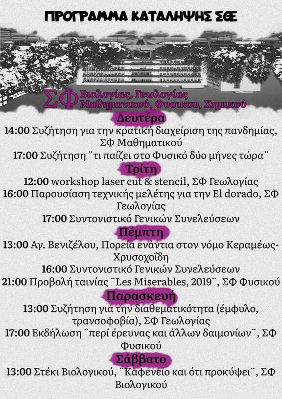 Παρουσίαση τεχνικής μελέτης για την El dorado από τον ΣΦ Γεωλογίας, στα πλαίσια της κατάληψης της ΣΘΕ από τους ΣΦ Βιολογίας, Γεωλογίας, Μαθηματικού, Φυσικού, Χημικού