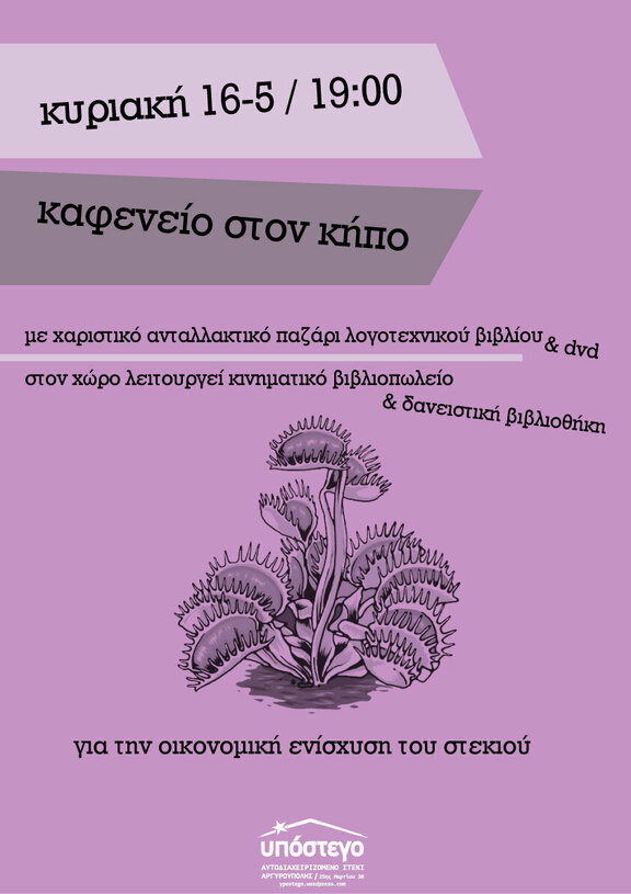 Κυριακή 16/5 από τις 19:00 - Τo 1o άνοιγμα του στεκιού για φέτος με καφενείο οικονομικής ενίσχυσης στον κήπο