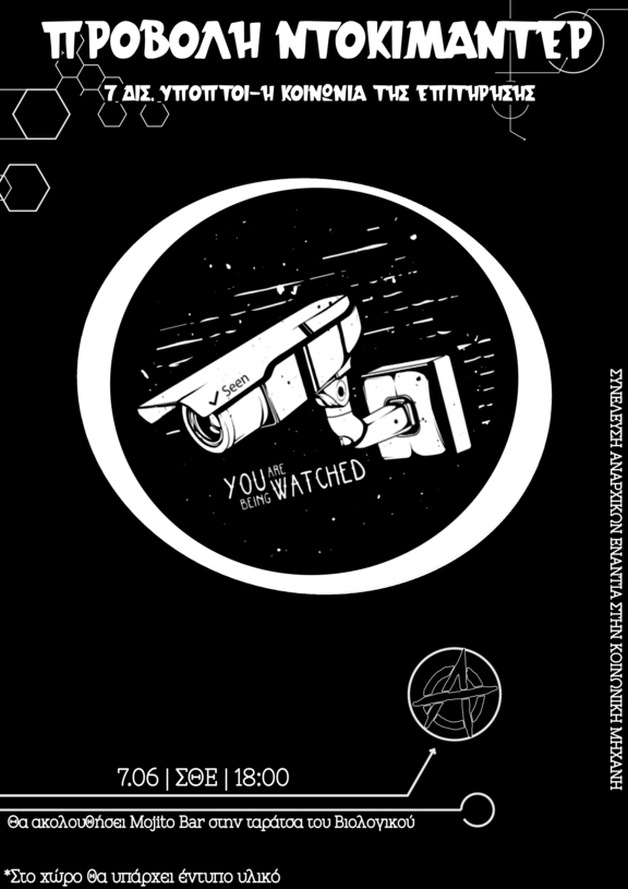 Προβολή του ντοκιμαντερ 7 δισ. ύποπτοι - Η κοινωνία της επιτήρησης