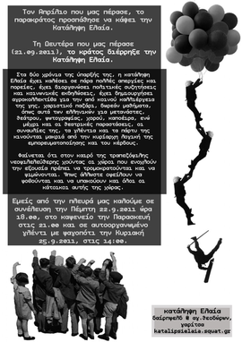 Τον Απρίλιο που μας πέρασε, το παρακράτος προσπάθησε να κάψει την Κατάληψη Ελαία. Τη Δευτέρα που μας πέρασε (21.09.2011), το κράτος διέρρηξε την Κατάληψη Ελαία.