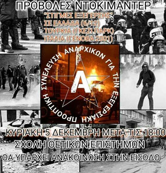 Κυριακή 5/12/ Προβολή ντοκιμαντέρ"στιγμές εξέγερσης" σε Ελλάδα (6/12/08)-Τουρκία(Γκεζί πάρκ Μάιος 2013)-Ιταλία(Γένοβα 2001)