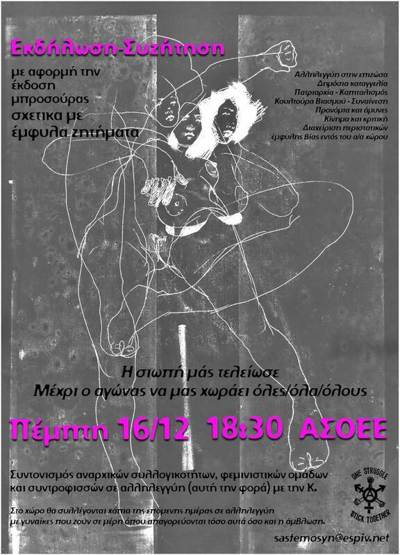 Συντονισμός αναρχικών συλλογικοτήτων,φεμινιστικών ομάδων και συντροφισσών σε αλληλεγγύη (αυτήν την φορά) με την Κ.