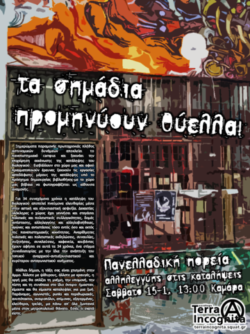 Aς το πούμε για ακόμη μια φορά, μιας και οι θεσμικοί φορείς δε φαίνεται να μπορούν να το αντιληφθούν με την πρώτη: Όσο κι αν εντείνουν την καταστολή, όσους χώρους κι αν εκκενώσουν, όσο κι αν κλαίγονται στα τηλεπαράθυρα, όσους/ες συντρόφους/ισσες κι αν θέσουν στο στόχαστρο εμείς θα είμαστε εδώ, στοιχειώνοντας την κοινωνική ειρήνη τους, μετατρέποντας το όνειρο τους για νομιμότητα σε εφιάλτη.