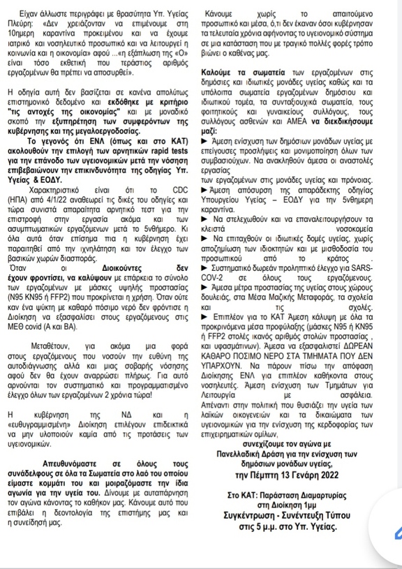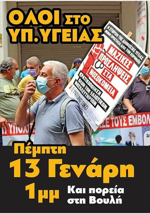 Στηρίζουμε την κινητοποίηση των υγειονομικών την Πέμπτη 13/1 στις 17.00 στο υπ. Υγείας