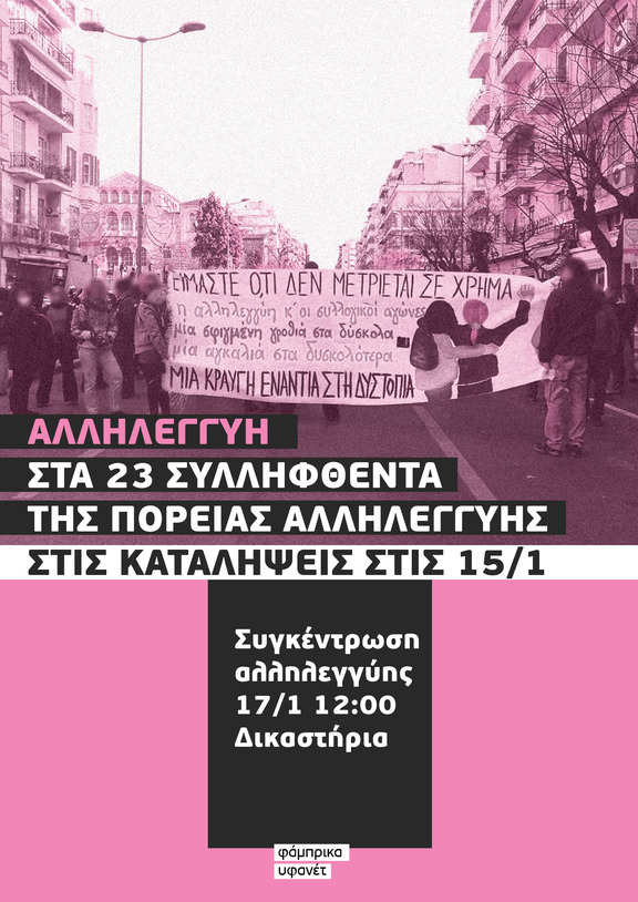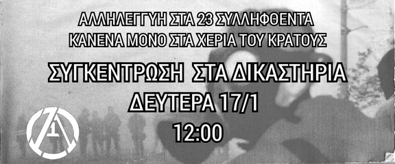 Νέα συγκέντρωση αλληλεγγύης Δευτέρα 17 Γενάρη, 12:00 Δικαστήρια Θεσσαλονίκης