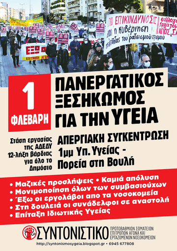 1/2/22 - 1 Φλεβάρη - Πανεργατικός ξεσηκωμός για την Υγεία