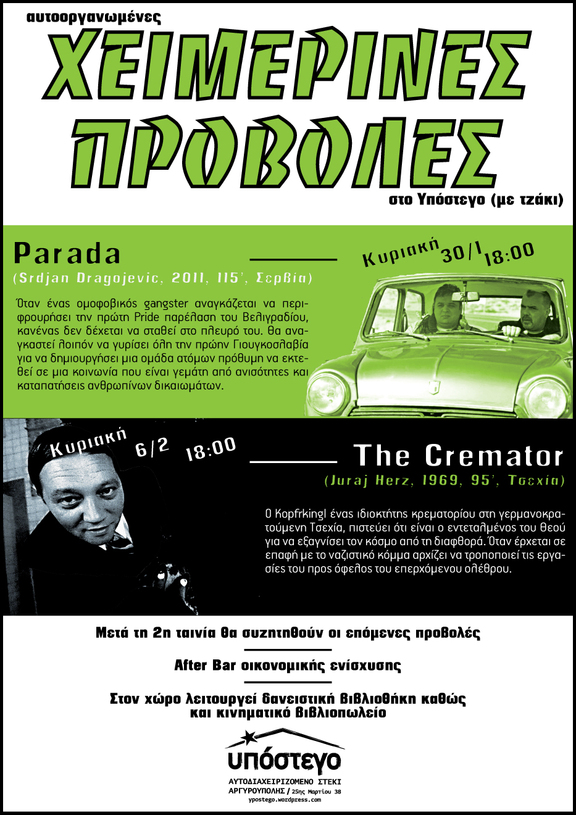 Προβολή "The Cremator" & συλλογή ειδών 1ης ανάγκης για τους πρόσφυγες