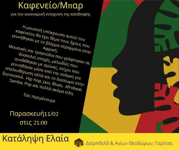 Καφενείο/Μπαρ για την οικονομική ενίσχυση της κατάληψης Ελαία