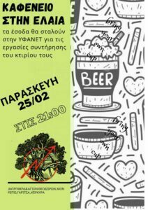Αυτή την Παρασκευή 25/02 στις 21:00 θα γίνει το εβδομαδιαίο πλέον καφενείο μπαρ της κατάληψης.