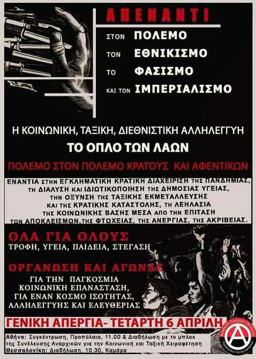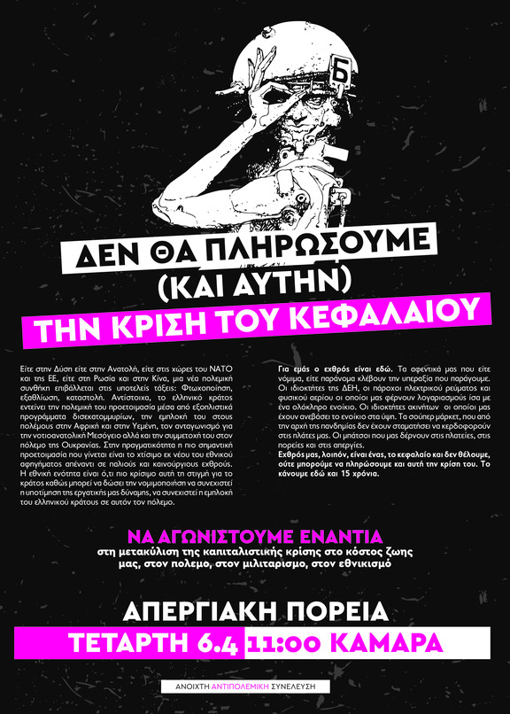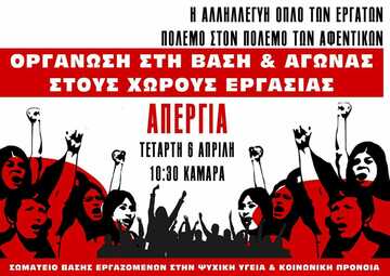 6 ΑΠΡΙΛΗ ΑΠΕΡΓΟΥΜΕ ΕΝΑΝΤΙΑ ΣΤΗΝ ΒΙΑ ΤΗΣ ΑΚΡΙΒΕΙΑΣ ΚΑΙ ΤΩΝ ΠΟΛΕΜΩΝ!