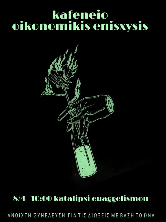 Καφενείο οικονομικής ενίσχυσης της συνέλευσης για τις διώξεις με βάση το DNA θα πραγματοποιηθεί στην κατάληψη Ευαγγελισμού, θεοτοκοπούλου 18 ,στις 22:00, την Παρασκεύη 08/04.