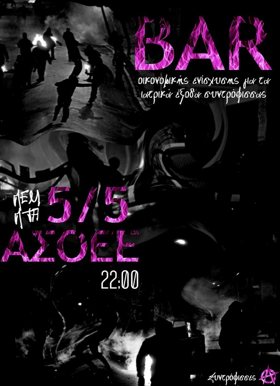 Bar οικονομικής ενίσχυσης για την κάλυψη ιατρικών εξόδων συντρόφισσας την Πέμπτη 5/5 από τις 22:00 στην ΑΣΟΕΕ